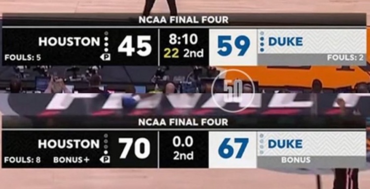 ESPN数据显示,终场前3分03秒,杜克以64-55领先,当时他们的胜率高达95.2%,但随后蓝魔进攻断电!最后33秒,休斯敦轰出9-0进攻高潮极限翻盘。